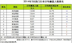2014年3月,網(wǎng)頁(yè)搜索日均覆蓋人數(shù)達(dá)1.4億人,網(wǎng)民到達(dá)率為56.7%,位居第一;網(wǎng)站導(dǎo)航日均覆蓋人數(shù)達(dá)1.4億人,網(wǎng)民到達(dá)率為54.4%,位居第二 -