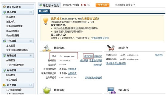 3.國內域名購買,轉入后15天可以打印域名證書;